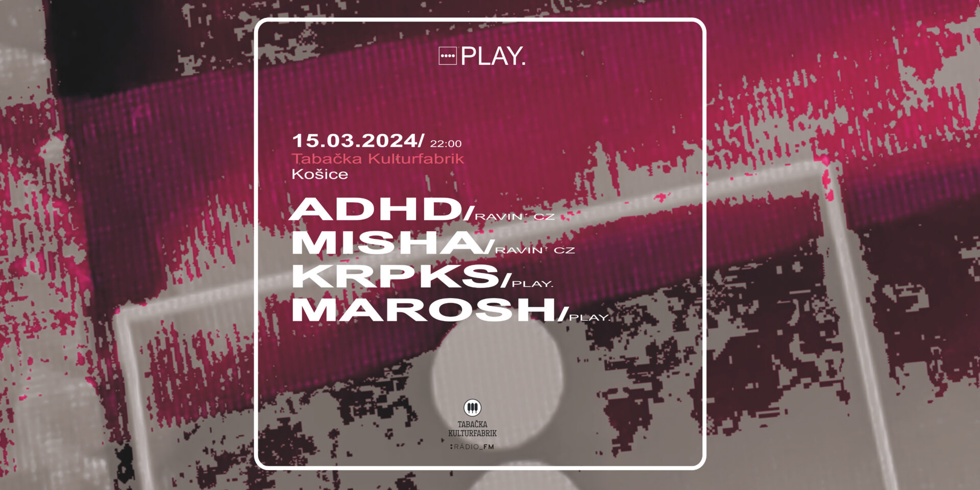 Bringing raw techno vibes, the fourth edition of PLAY. Tabacka features the pulsating sounds of RAVIN`, a Czech group from Brno. Joining them in this sonic journey is the residents of PLAY.